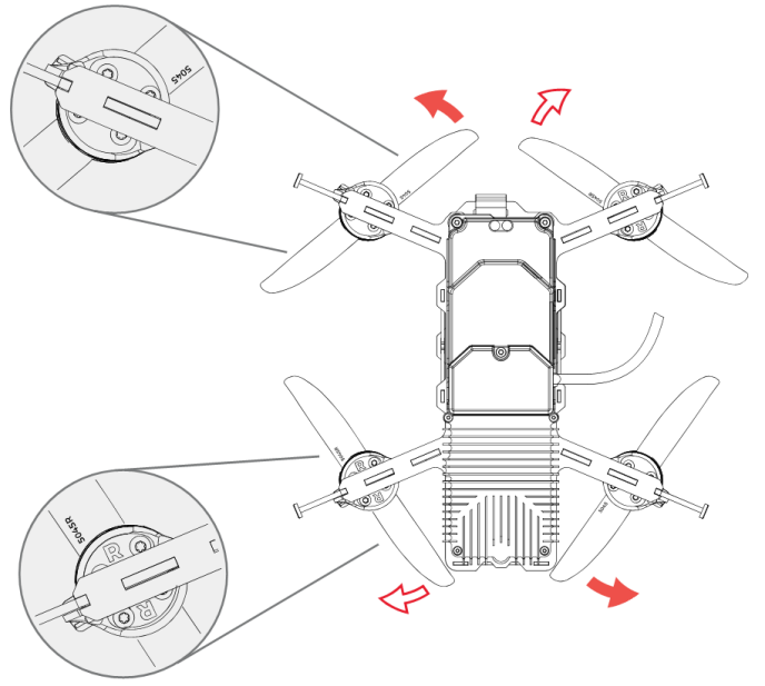 <figure><img src="https://3798671238-files.gitbook.io/~/files/v0/b/gitbook-x-prod.appspot.com/o/spaces%2FEUlQdNranSJ0ddu4qSxa%2Fuploads%2FK809wlZFnvHVvq8Kb9vi%2Fprops%20e2-2.webp?alt=media&#x26;token=07bde910-4519-476b-8e2d-e5fc275ef4c4" alt="" width="516"><figcaption><p>Propellers orientation</p></figcaption></figure>