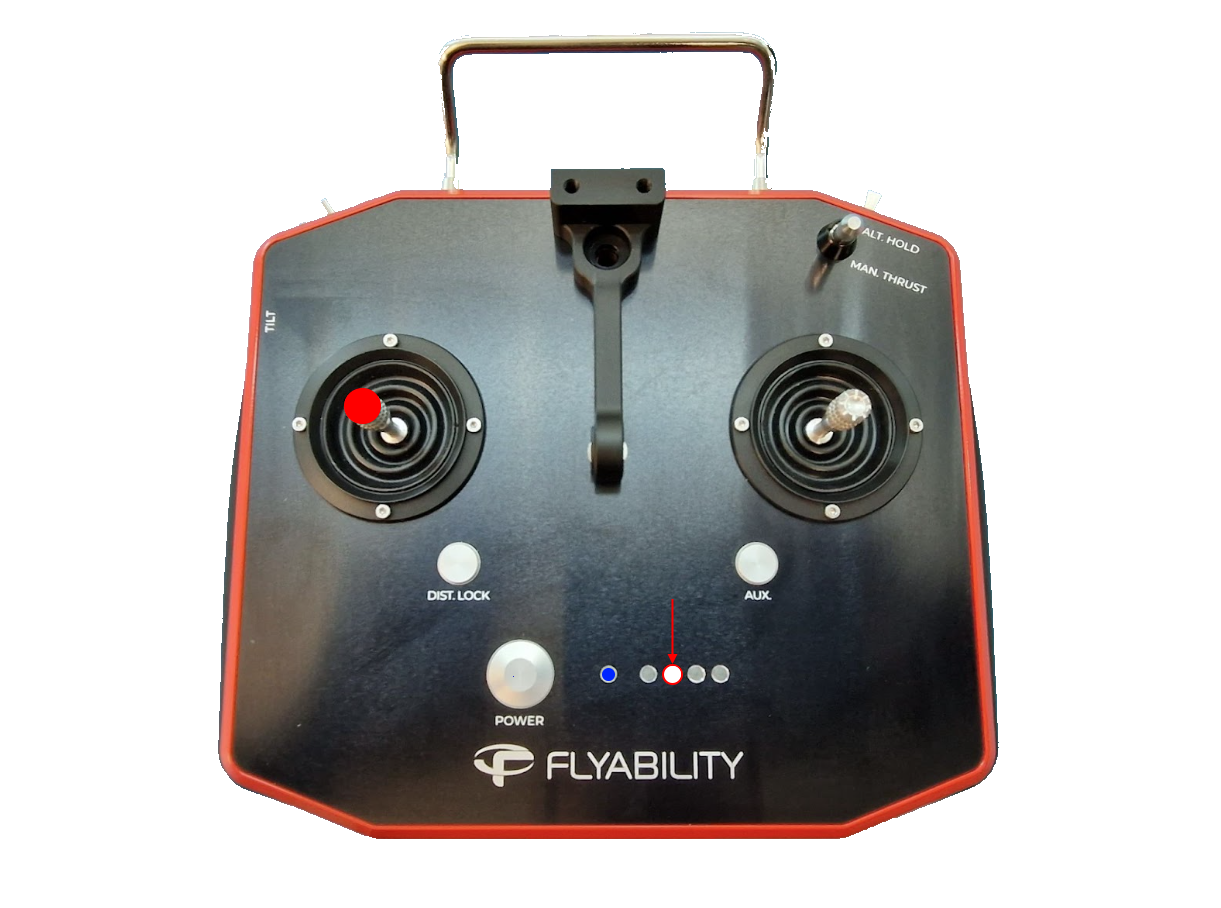 Move the right stick up, down, left and right all the range, repeat 3 times, the third led of the battery level indicator will blink leave the stick in the center the led should stay fixed.