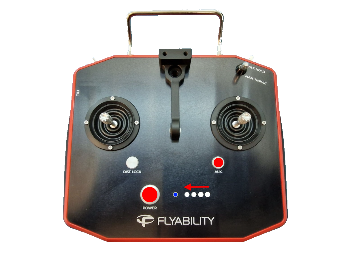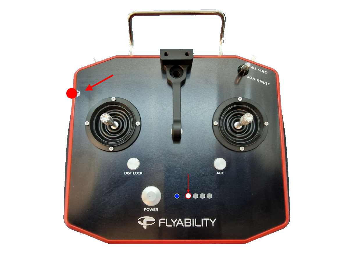 Move the camera tilt knob up and down all the range, repeat 3 times, the first led of the battery level indicator will blink, place the knob in the horizontal position, the led should stay fixed.