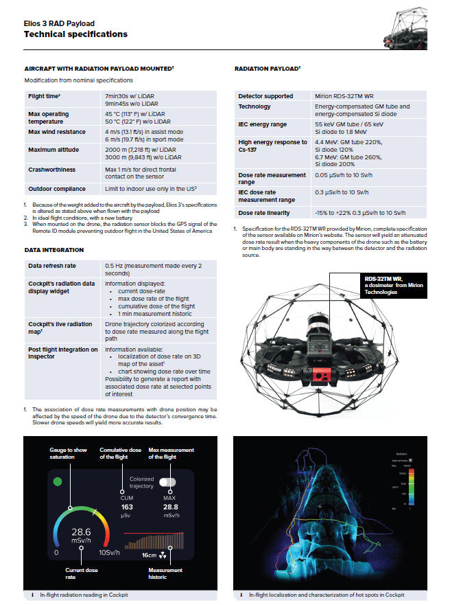 Perform fast and accurate radiation surveys of indoor spaces with the Elios 3 RAD Payload, powered by